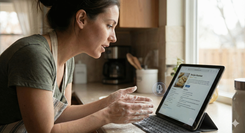 It’s about navigating a complex dashboard with a simple conversation or scrolling a recipe page with a wave of a hand while your hands are covered in flour.